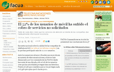 La información sobre tarifas que facilitan los teleoperadores es el aspecto peor calificado por los usuarios. El 74% de los participantes en la encuesta valora que la información no es clara ni correcta. De hecho, según el resultado de la encuesta de FACUA, un 47% de los usuarios reconoció que le aplicaron una tarifa o promoción que no se ajustaba a la información que le facilitó el teleoperador cuando la contrató. En el caso de Pepephone, frente a ese 47%, tan sólo un 4% de los clientes informa sobre errores de promoción o tarifas aplicadas.