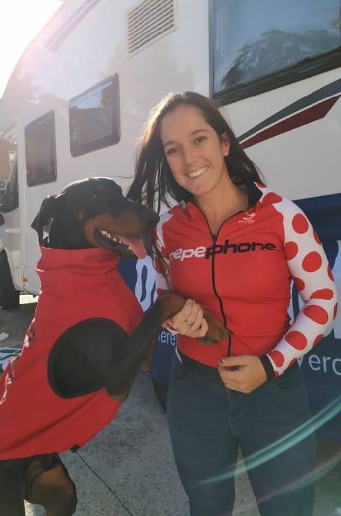 Elena siguió practicando y motivando a sus animales con esta modalidad hasta que, recientemente, recibió una noticia que le hizo saltar de alegría. Le comunicaron que ¡había sido seleccionada para participar en el Campeonato Europeo de ICF en Bélgica! Elena no podía dejar de sonreír. Pero esta sonrisa se tornó al momento en un gesto de preocupación. En la carta también le explicaban que tenía que asumir íntegramente los gastos del viaje. Empezó a echar cuentas y viajar tantos kilómetros con una bici y un perro no era tan fácil?