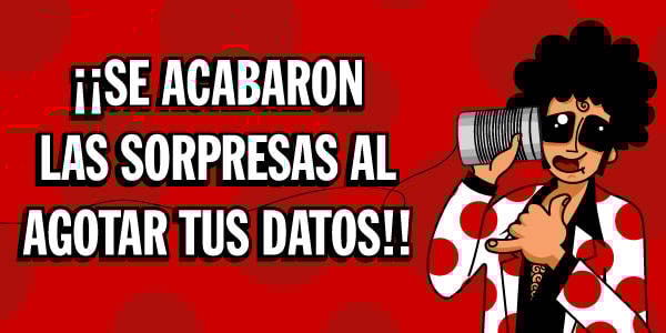 A partir de ahora, cuando se acaben los datos de vuestra tarifa, podréis seguir navegando a velocidad reducida sin tener que pagar más o, si lo preferís, podéis navegar a máxima velocidad por 1?/día con límite de 1GB/día. De esta forma, podréis utilizar los MB con tranquilidad y sin gastos imprevistos.